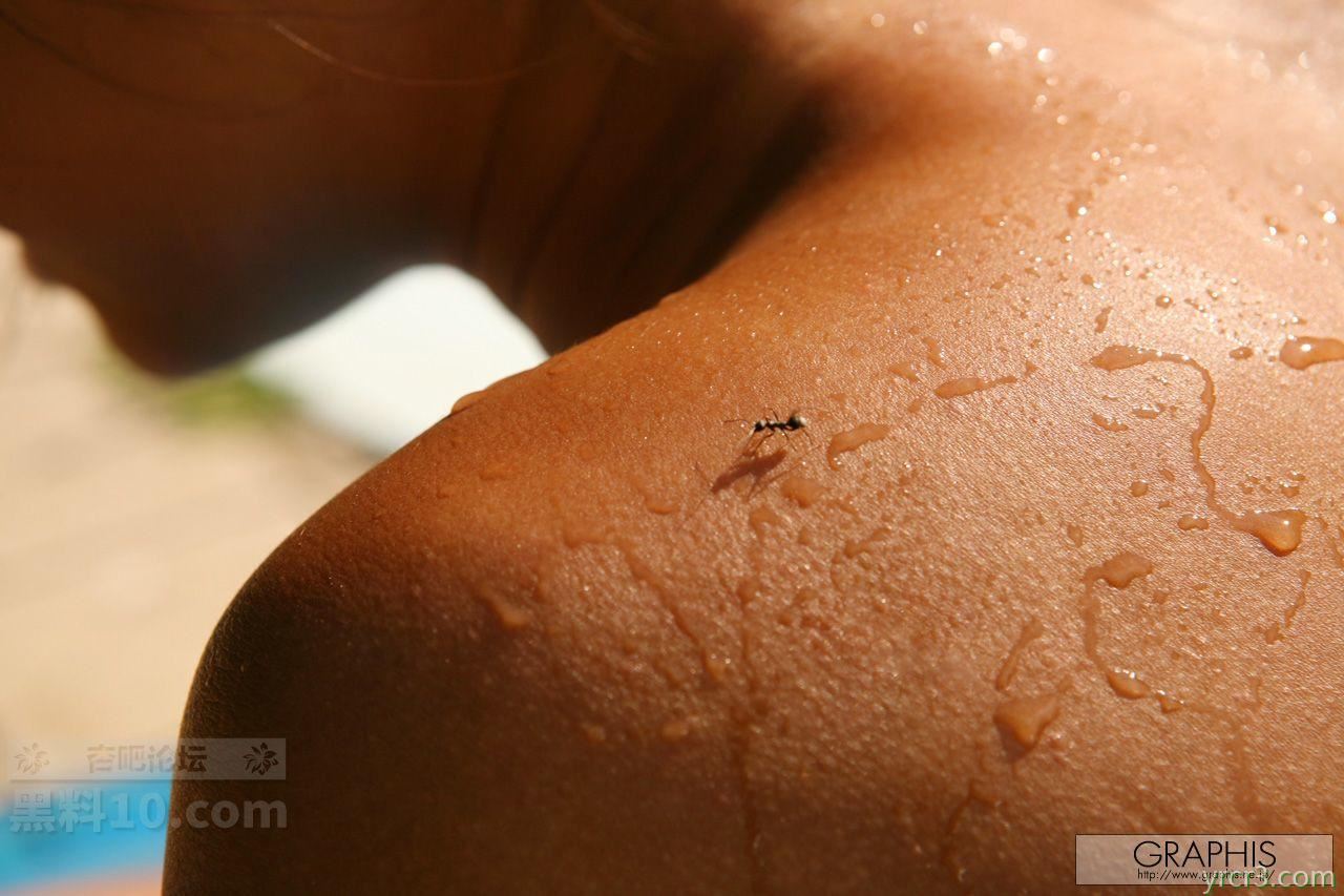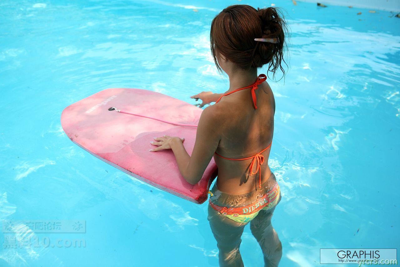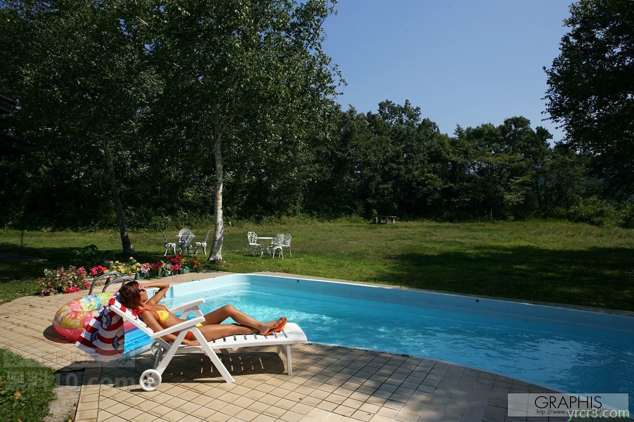 黄色比基尼短发少女泳池边躺椅上裸体日光浴【24P】
