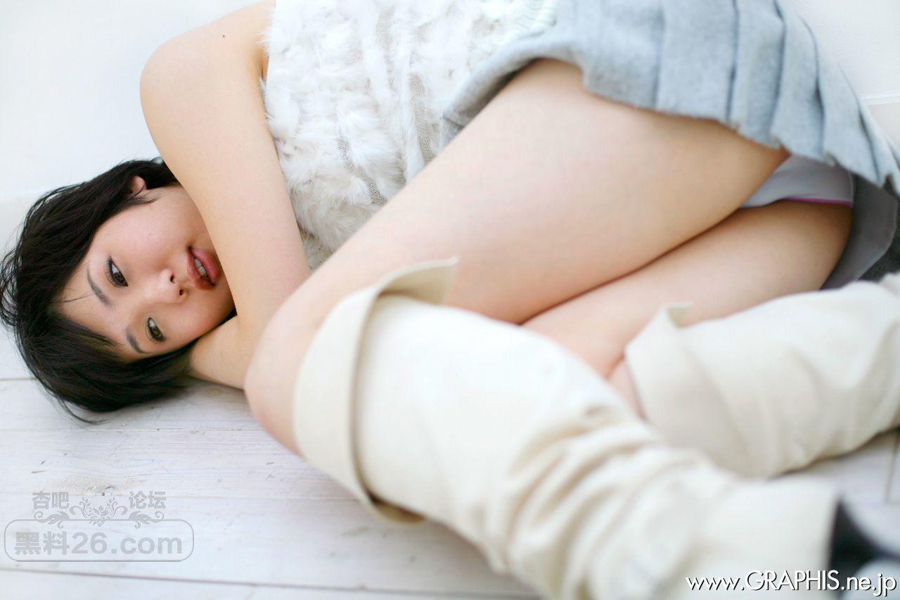 白色棉背心浅色短裙短发美女白色背景宽衣解带【15P】